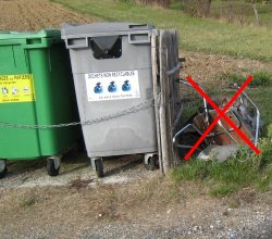 cartons, de papiers et de verres en dehors des conteneurs ... Encombrants (machines à laver, vélos, sièges pour bébés, pneus ...), gravats et déchets quelconques déposés près des conteneurs ... . . . quelqu'un débarrassera bien ! ! ! !