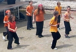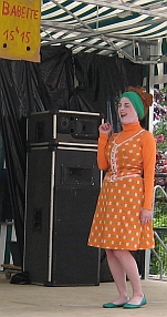 ... sur le terrain de pétanque se succédaient spectacles de danse (avec l'association Corps et Harmonie de Castelnau-Montratier), théâtre-forum, animé par les comédiens de Choeur d'Artichaut ... et théâtre burlesque avec Diane Lévêque à la recherche de l'oiseau rare ... (compagnie "Odile Pinson" de Bruxelles)