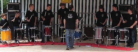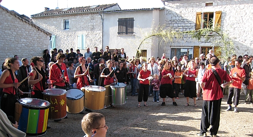 L'ouverture de la journée a été laissée aux plus jeunes : le groupe de percussion enfants de Lalbenque, les Tintamarteleurs, installés sur le terrain de pétanque